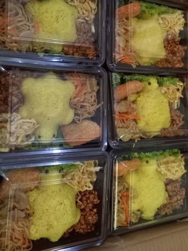 Tersedia dalam bentuk nasi kotak, nasi bungkus, dan tumpeng dengan pilihan lauk perkedel, bihun goreng, tempe orek, telor bali, sambal goreng kentang, dll.